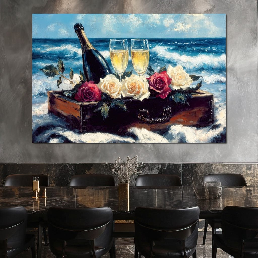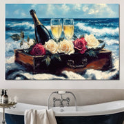 Tablou Canvas Premium LuxCanva® E1052, Sampanie la Tarmul Marii, Valuri, Pahare, Lux, Trandafiri, Exotic, Living Room, Culori vibrante - 40 X 60