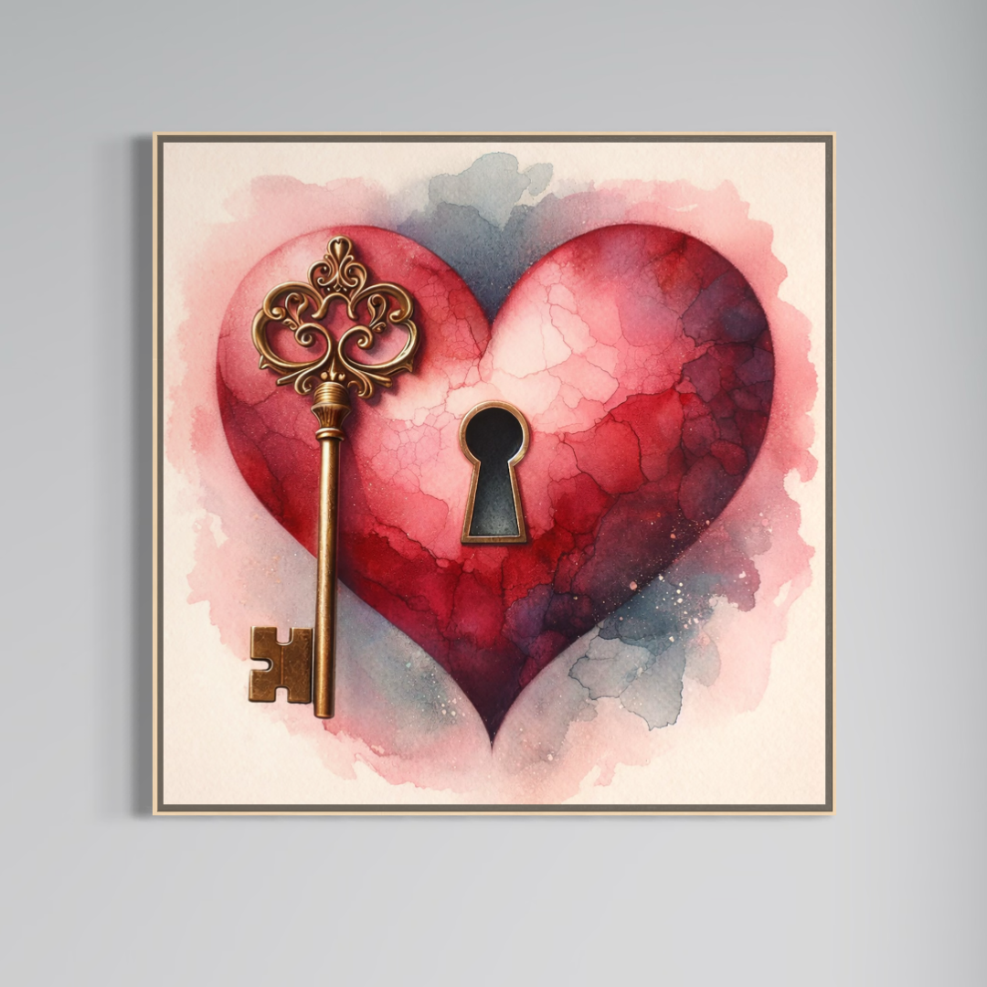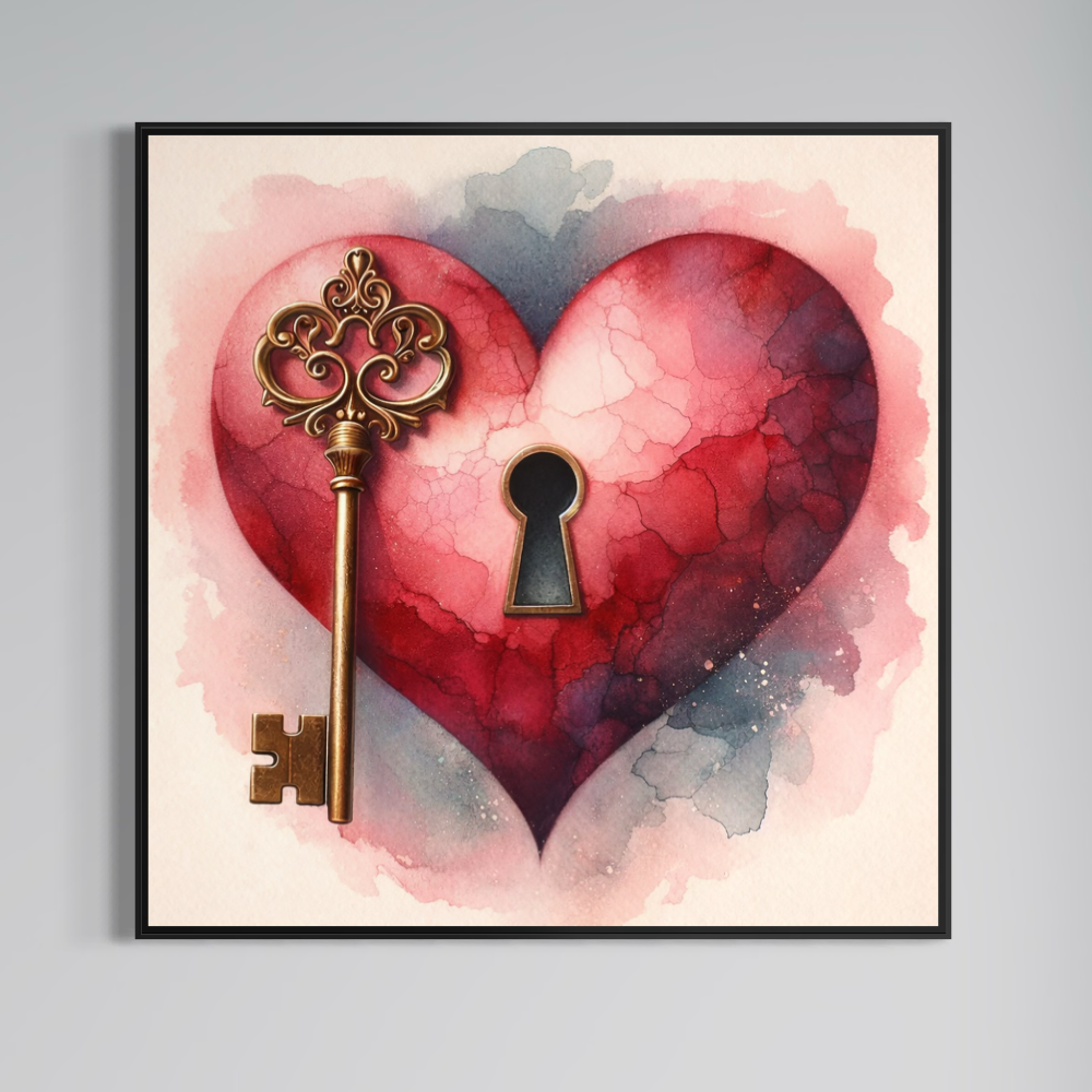 Tablou Canvas Premium, LuxCanva® E1062, Lacatul Sufletului, Dragoste, Inima, Iubire, Cheie, Lacat, Usa, Seif, Secret, Deschidere, Legamant, Protectie, Fidelitate, Arta, Living, Dormitor - 50 X 50