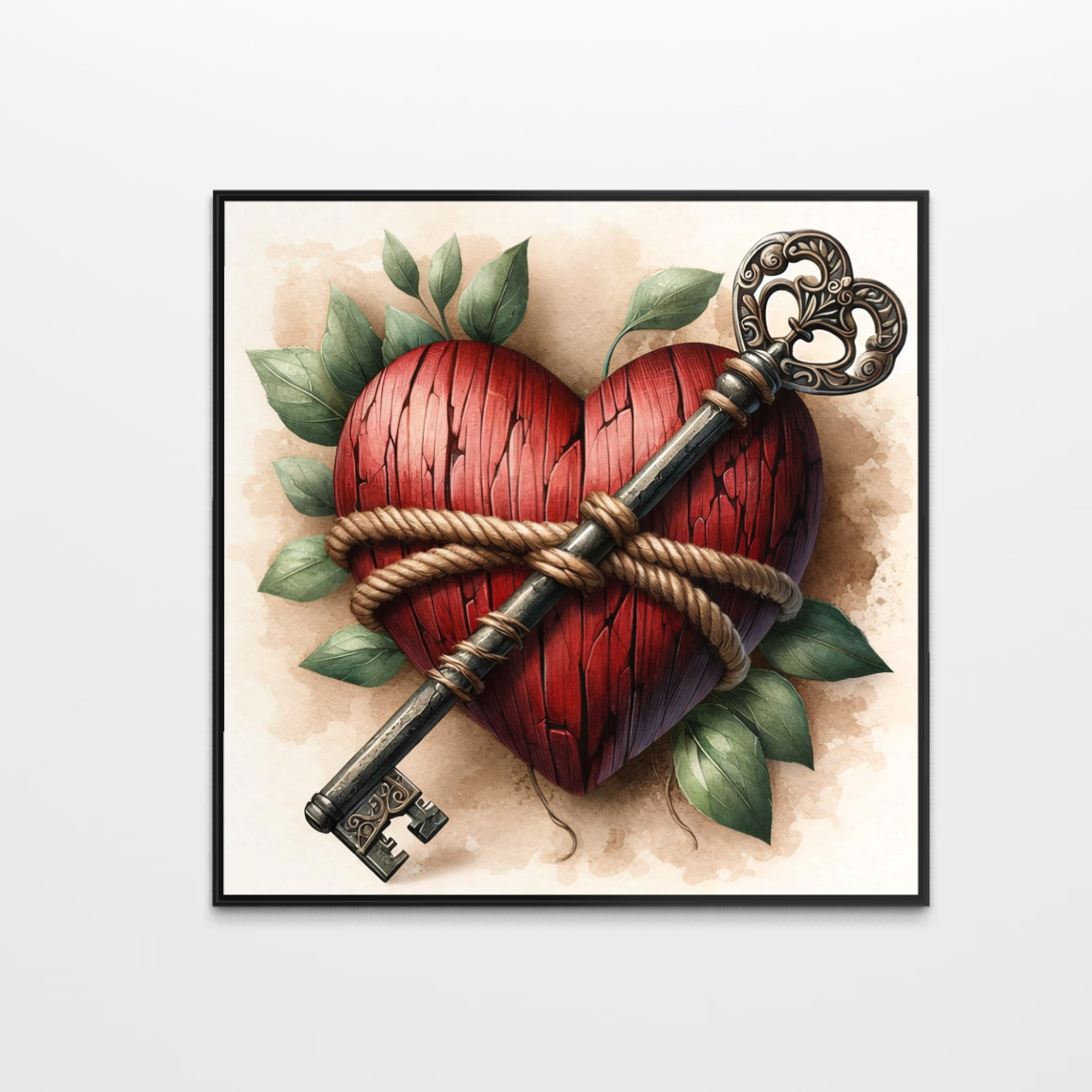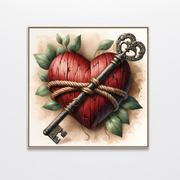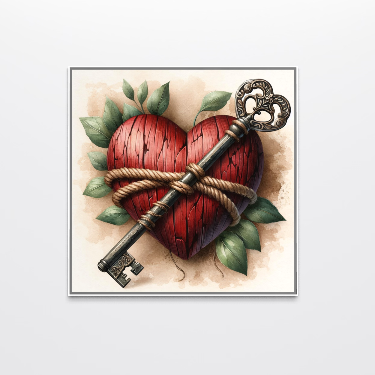 Tablou Canvas Premium, LuxCanva® E1067, Cheia Sufletului Meu, Dragoste, Inima, Iubire, Lacat, Cheie, Incredere, Intimitate, Taina, Destin, Frumusete, Legatura, Living, Dormitor - 50 X 50