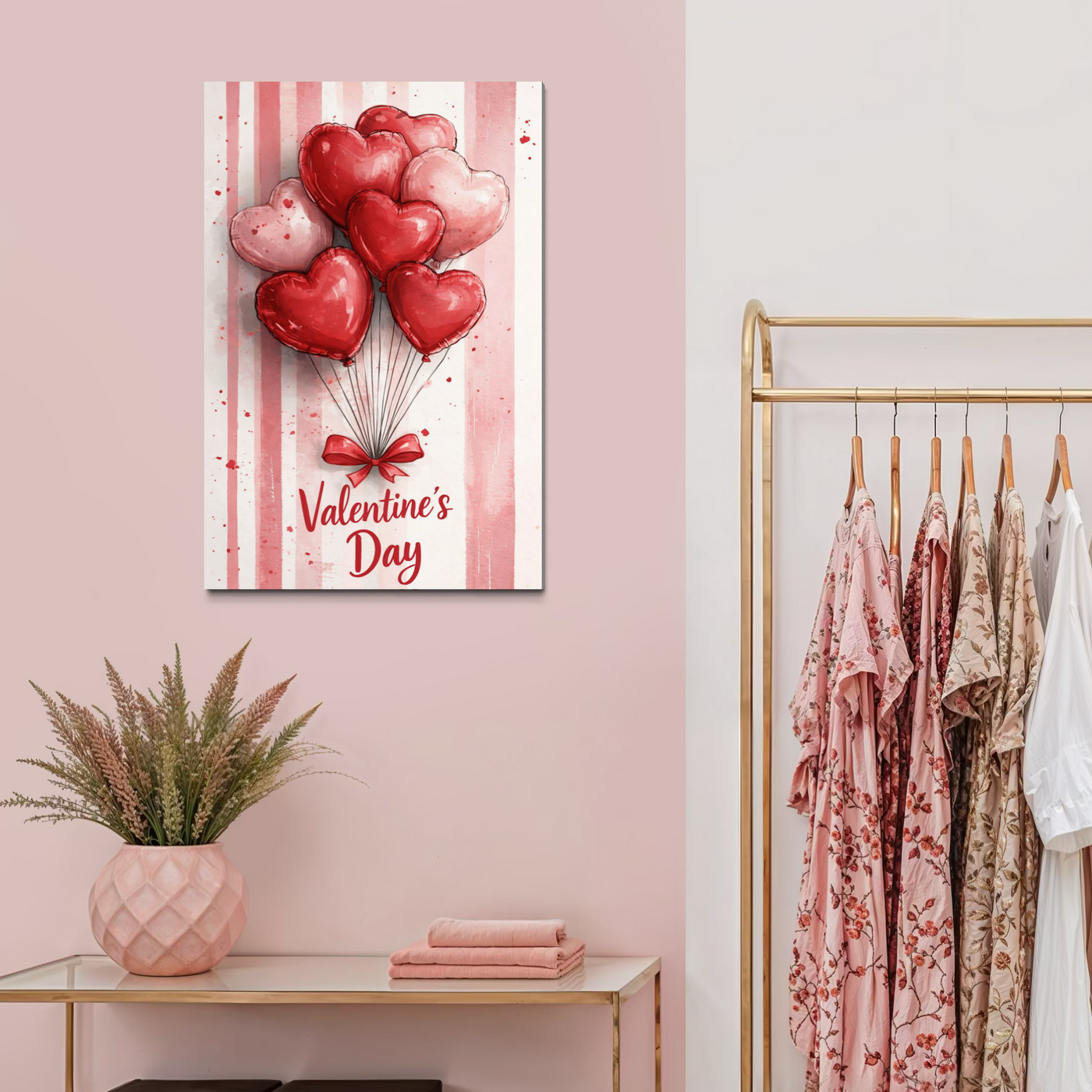 Tablou Canvas Premium, LuxCanva® E1069, Inimi pentru Valentine’s Day, Dragoste, Eternitate, Baloane, Inima, Rosu, Declaratie, Plutire, Aer, Cadou, Emotie, Daruire, Cuplu, Living, Dormitor