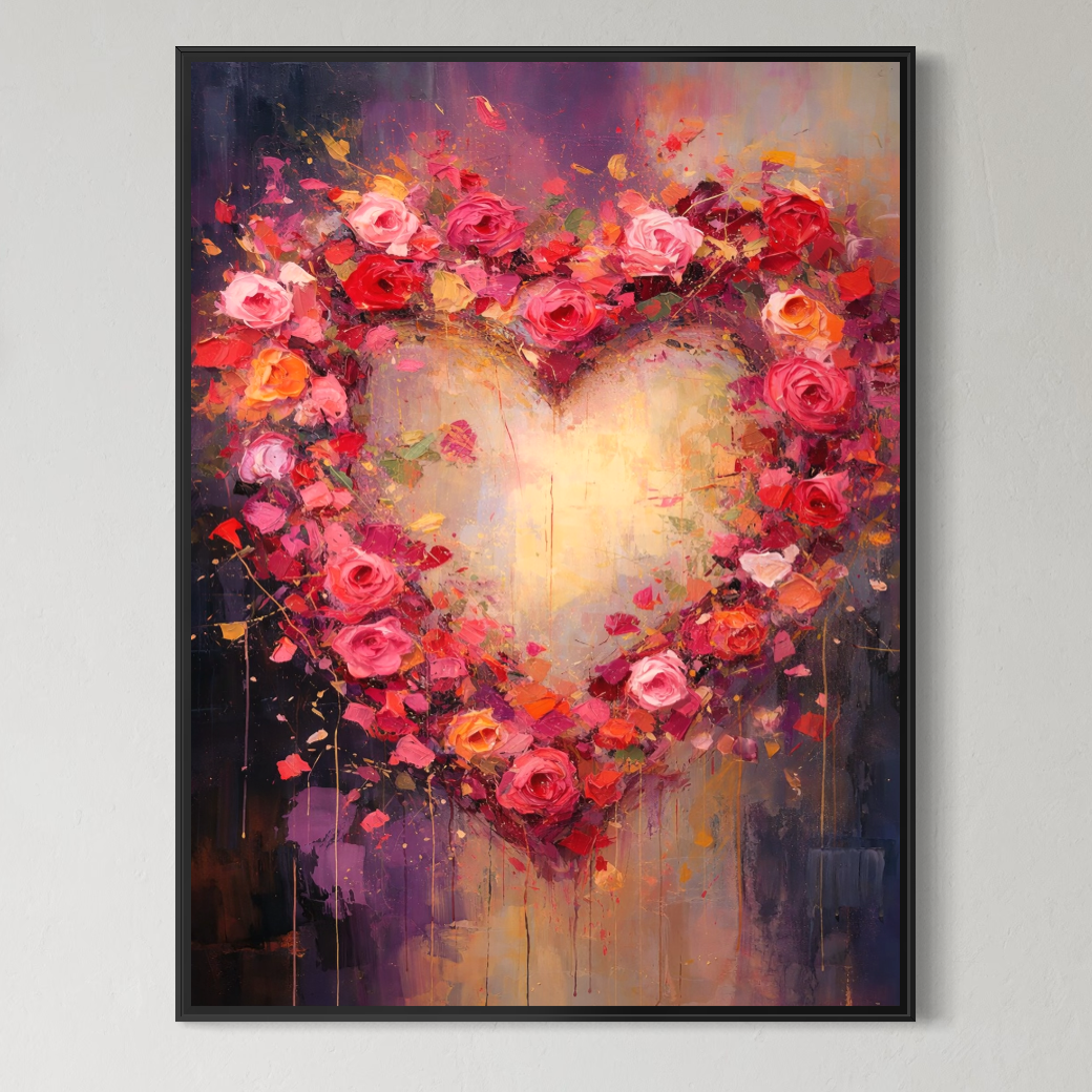 Tablou Canvas Premium, LuxCanva® E1070, Cand Iubirea Infloreste, Dragoste, Inima, Trandafiri, Puls, Dragoste, Flori, Gradina, Eden, Petale, Suflet, Rosu, Roz, Emotie, Living, Dormitor - 45 X 60