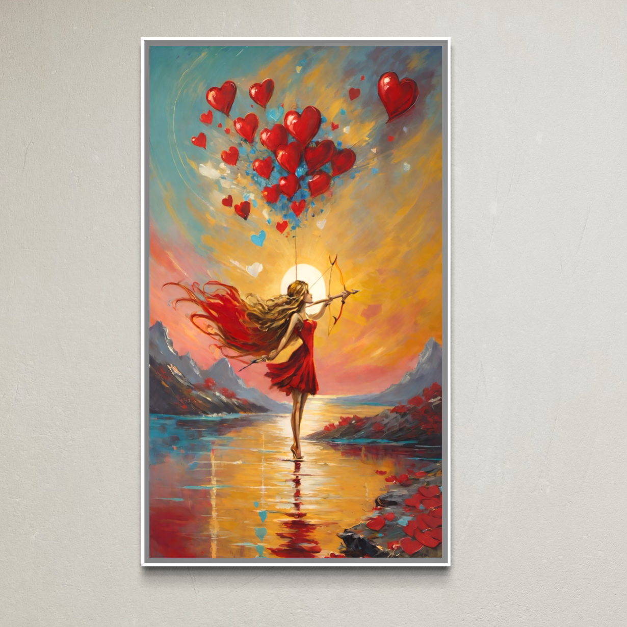 Tablou Canvas Premium, LuxCanva® E1075, Arcasa Iubirii, Dragoste, Inima, Arc, Sageata, Cupidon, Zbor, Putere, Sorinta, Implinire, Magie, Cer, Iubire, Vesnicie, Tandrete, Living, Dormitor - 40 X 70