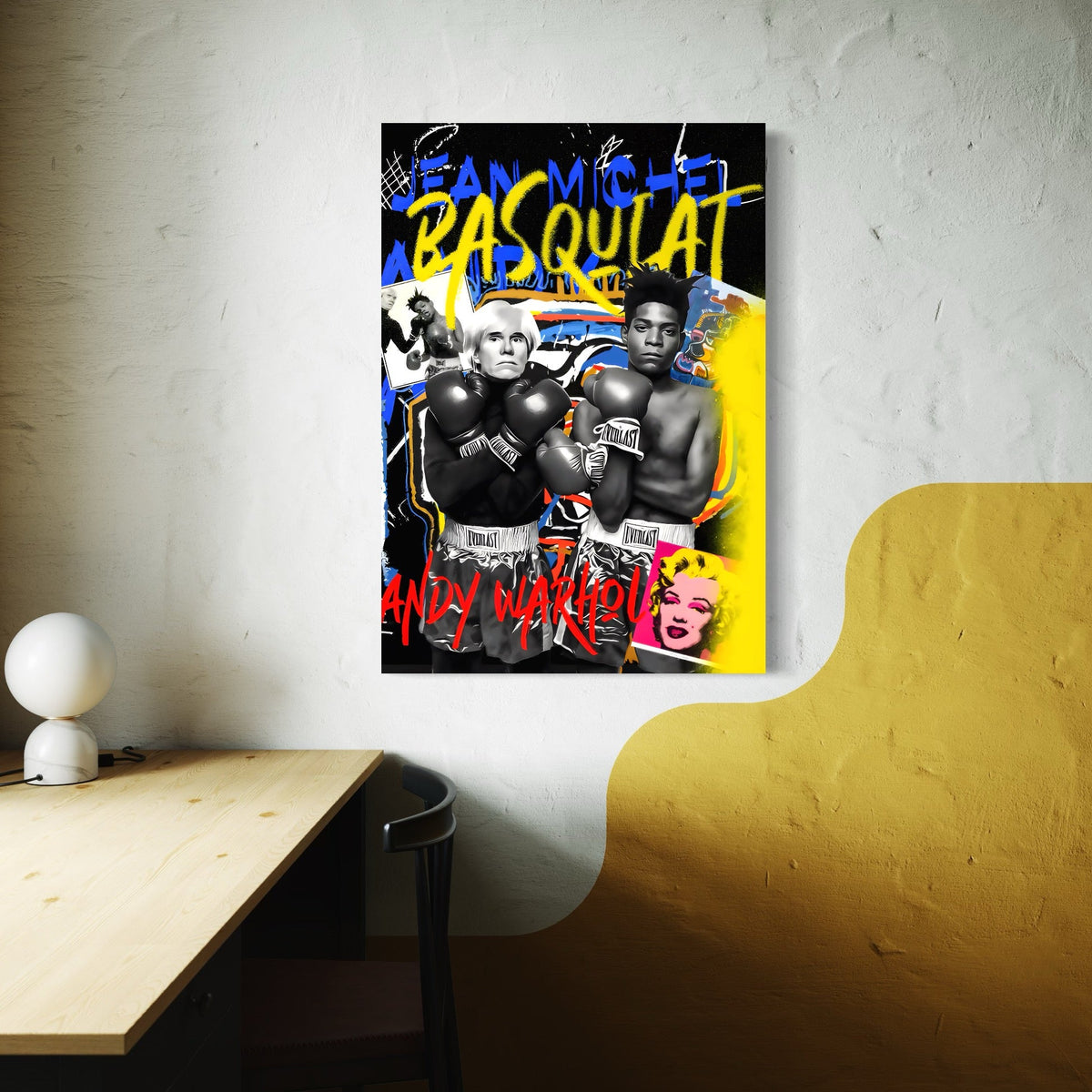Tablou Canvas Premium LuxCanva® C1153, Basquiat And Warhol Duel , Culori, Icons, Boxing, Game Room, Bar, Relaxare, Culori Vibrante