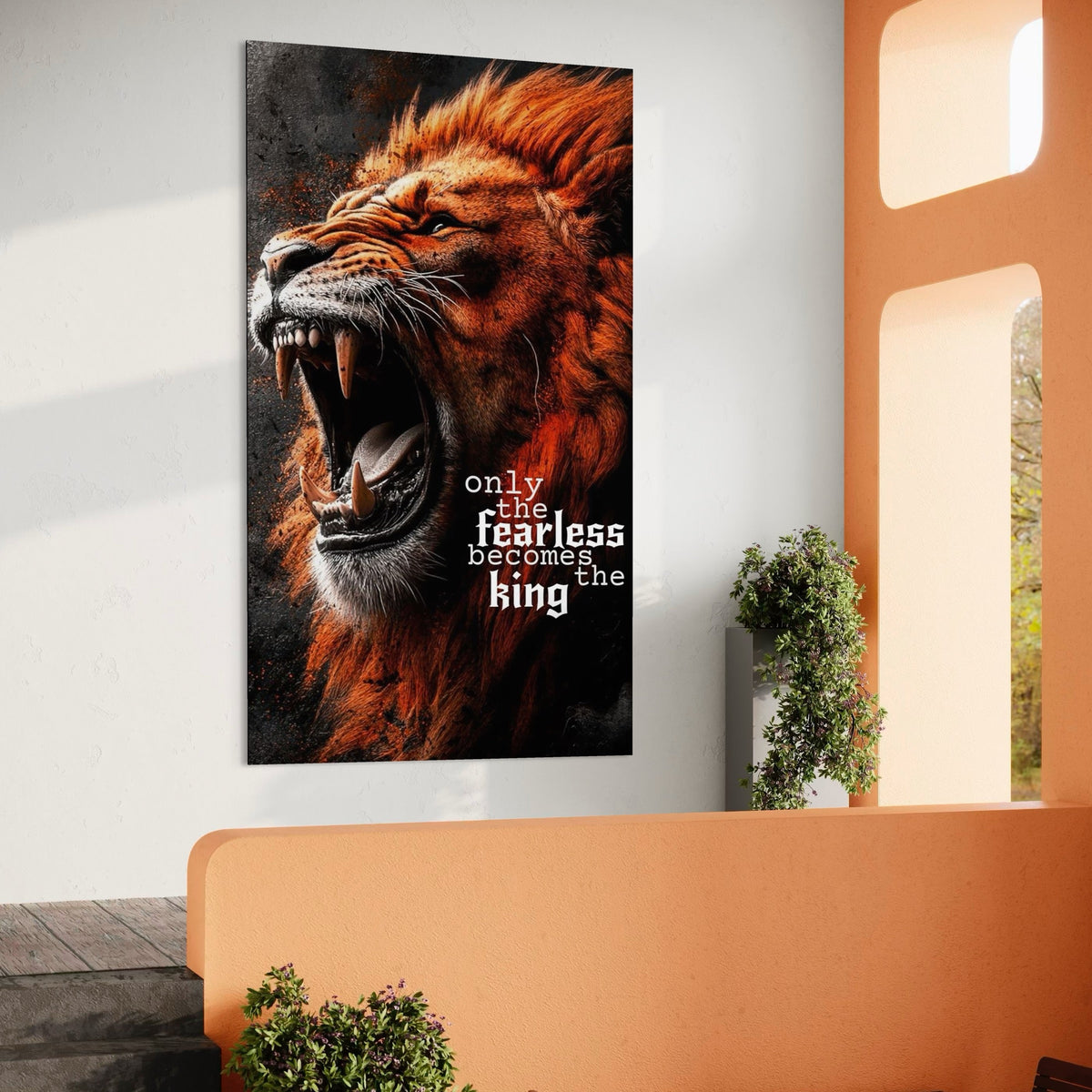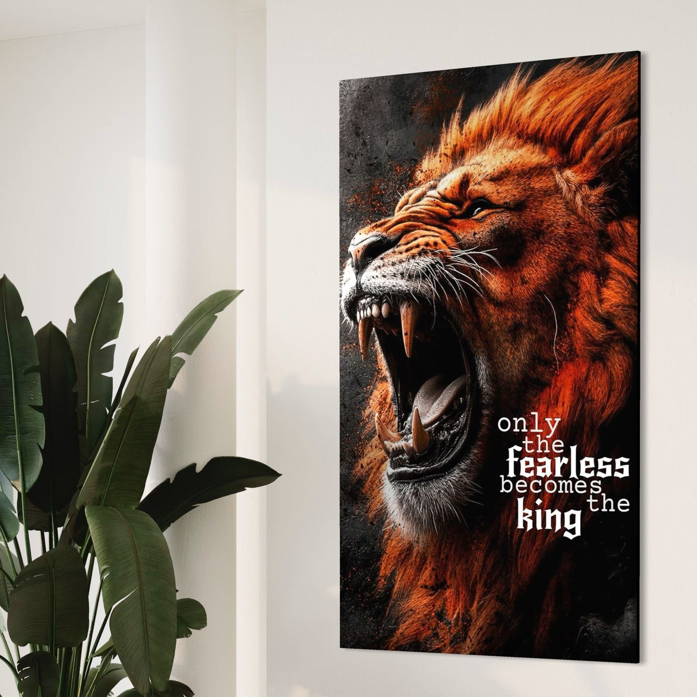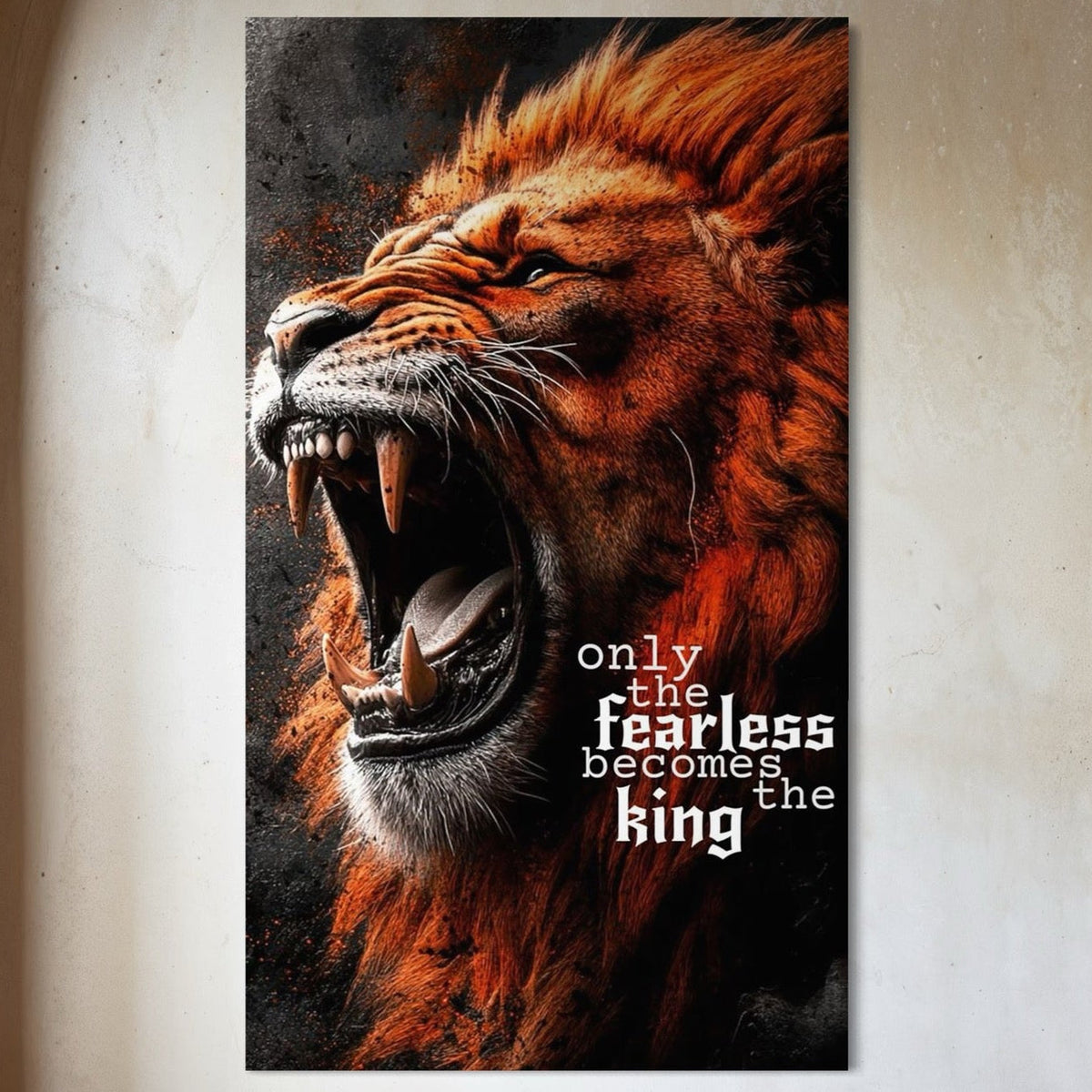 Tablou Canvas Premium, LuxCanva® Q1004, Regele Fara Frica, Putere, Dominant, Suprematie, Autoritate, Leu, Rege, Coroana, Coama, Feroce, Stapan, Voce, Raget, Conducator, Birou, Dormitor - 40 X 70 / Doar Sasiu Lemn / Normala
