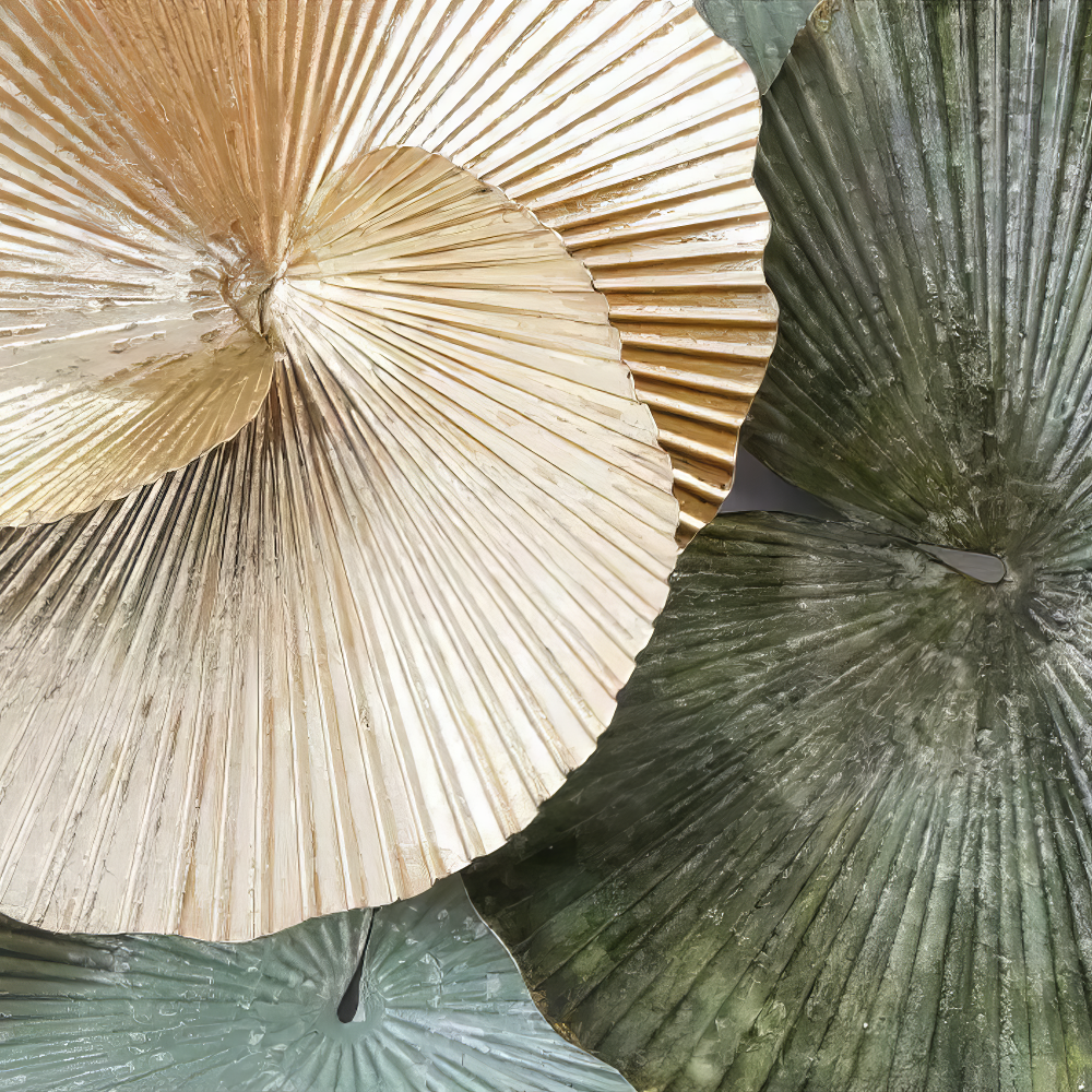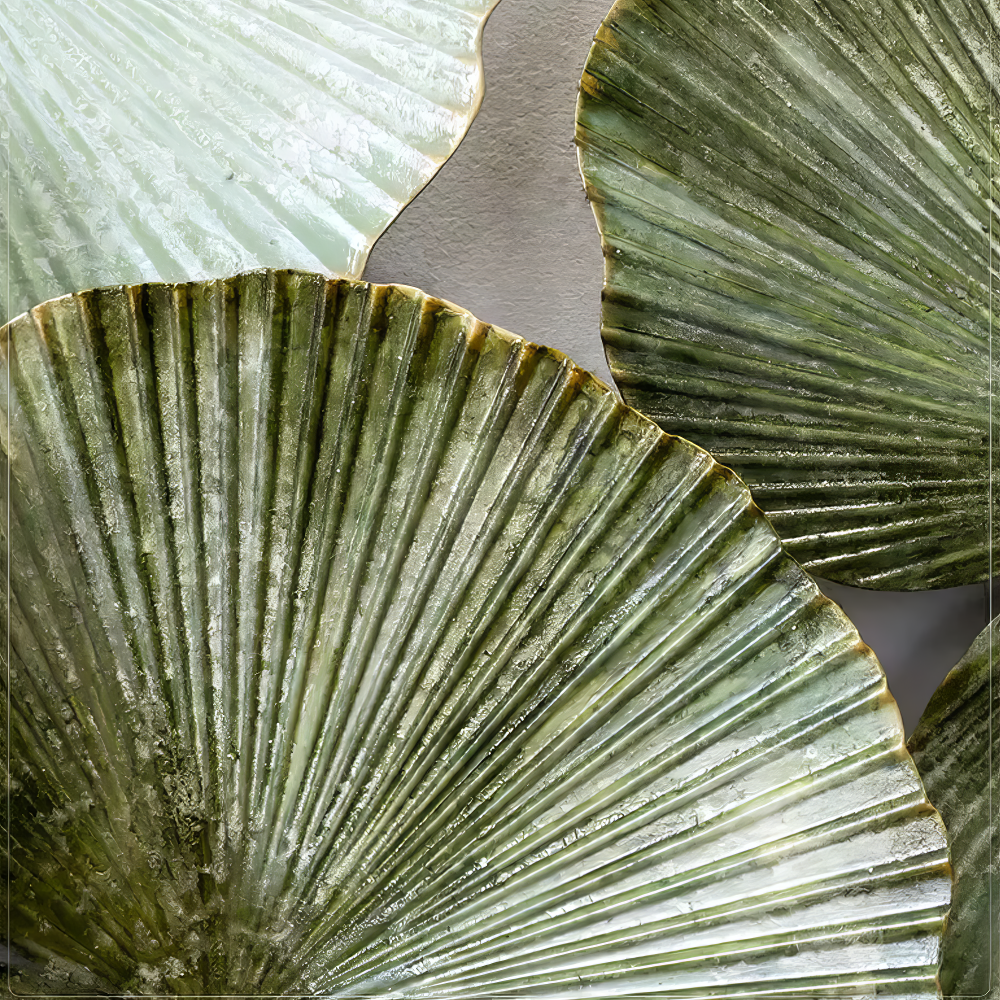 Decoratiune Metalica de Perete LuxCanva® Green Serenity A2508, din Metal, Orizontala, Verde Salvie, Auriu, Dimensiune Mare 165 x 77 cm