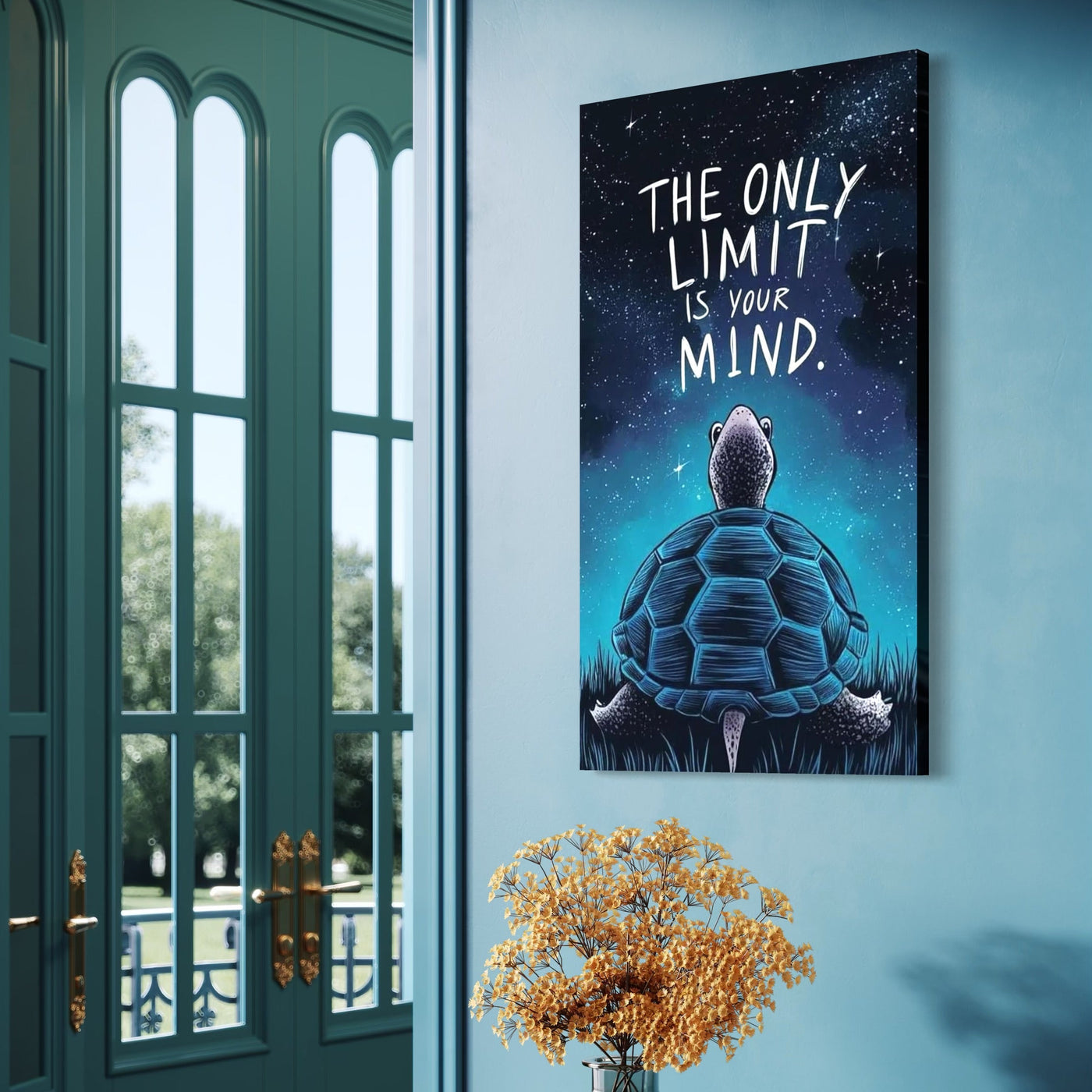 Tablou Canvas Premium, LuxCanva® Q1001, Curajul De a Crede, Limita, Testoasa, Cer, Instelat, Gandire, Motivatie, Curaj, Cosmos, Rabdare, Potential, Minte, Pozitiv, Credinta, Birou, Dormitor - 40 X 70 / Doar Sasiu Lemn / Normala