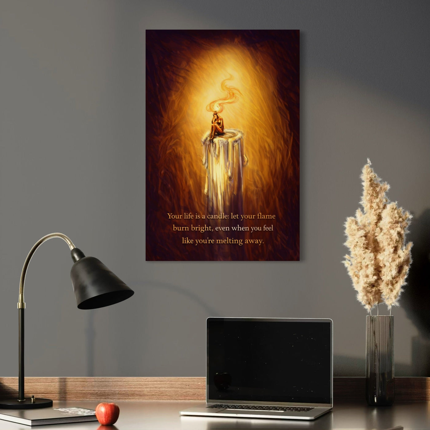 Tablou Canvas Premium, LuxCanva® Q1043, Lumina Care Nu Cedeaza, Lumanare, Ganduri, Flacara, Motivational, Mesaj, Speranta, Echilibru, Viata, Birou, Dormitor - 40 X 60